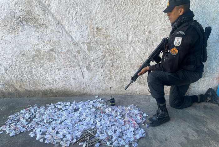 Uma pistola, um carregador, munições, um rádio comunicador e drogas foram apreendidos durante a operaçãoDivulgação/PMERJ