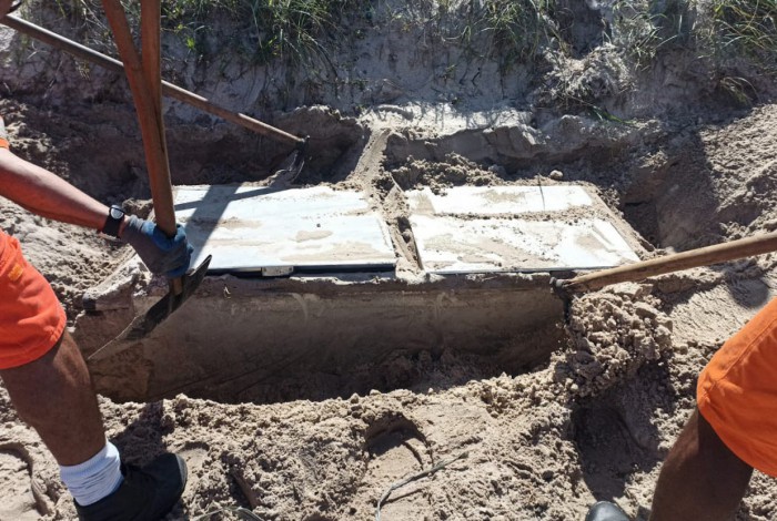 Agentes retiram geladeira enterrada na praia para descarteDivulgação/Seop