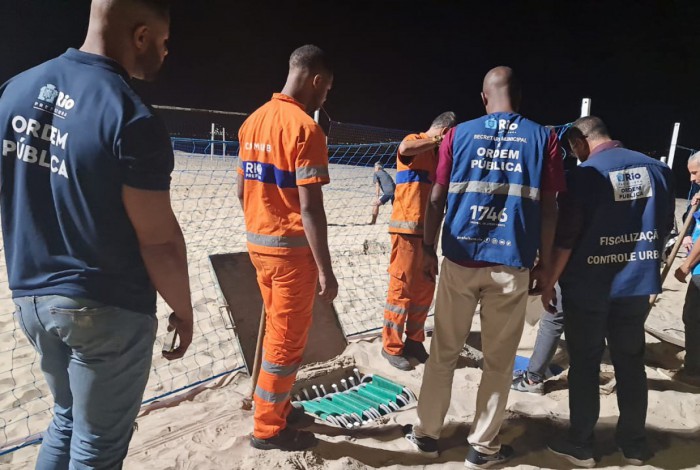 Em março, os agentes encontraram diversos equipamentos esportivos dentro de um freezer e de uma caçamba da Comlurb, que estavam enterrados na areia da praia do Flamengo.