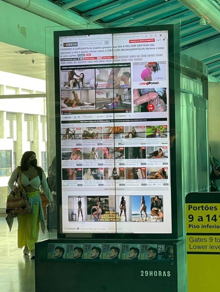 Olha que situação inusitada que aconteceu no aeroporto Santos Dumont: hackearam os painéis do local e colocaram imagens do XVideos