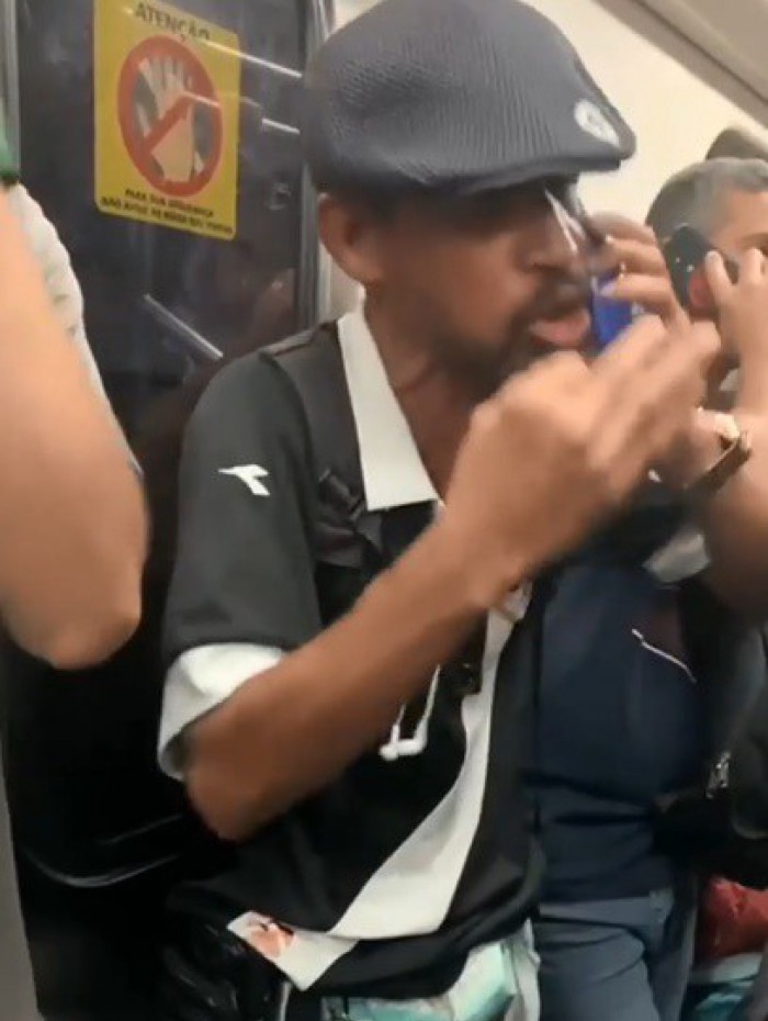 Tudo começou quando um homem tentava convencer sua mulher de que estava mesmo dentro do trem. Nas imagens, que viralizaram nas redes sociais, um passageiro com a camisa do Vasco da Gama está no telefone com a esposa.