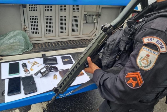 Com os criminosos, que usavam um veículo Fiat cor vermelha roubado, os policiais apreenderam uma arma de fogo, celulares, carteiras e diversos pertences roubados. A ocorrência foi registrada na 21ªDP (Bonsucesso).