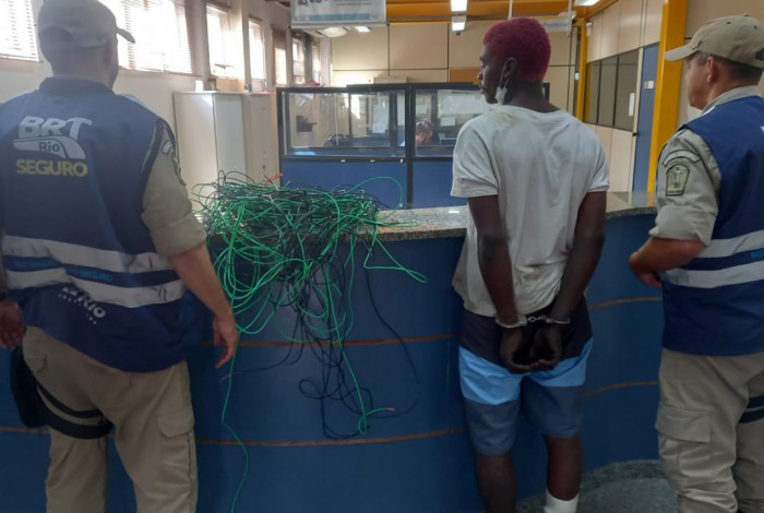 No fim da manhã, o Centro de Controle do BRT acionou uma das patrulhas após flagrar um homem furtando 150 metros de fios elétricos na estação Ventura, em Jacarepaguá. Após a ação, o homem fugiu do local em direção ao terminal do Recreio, onde foi encontrado pelos agentes. O criminoso, não identificado, foi conduzido para a 16ª DP (Barra da Tijuca).
