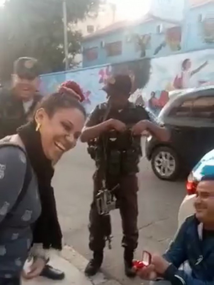 Vídeo: Homem pede ajuda de PMs para fazer pedido de casamento inusitado