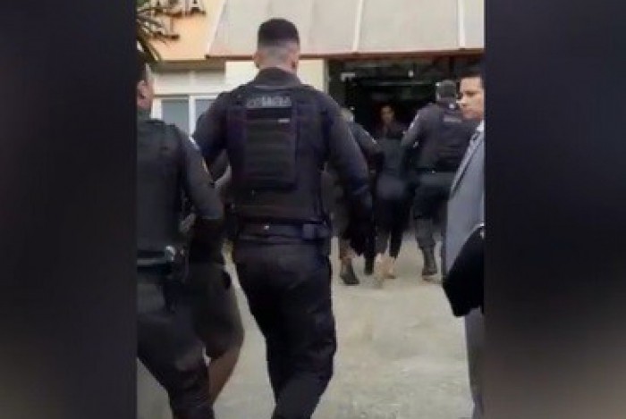 O delegado Carlos Augusto Guimarães da Silva solicitou que os suspeitos parassem com a bagunça. "Não quero palhaçada dentro da delegacia, não quero bagunça aqui, você já está sendo preso, tem um mandado contra você e contra ela também, acalma seu coração que daqui a pouco a gente vai conversar", disse.