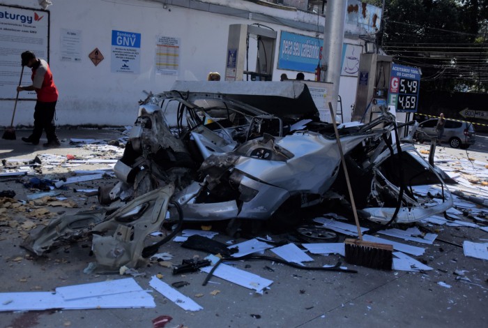 Um carro que estava abastecendo o tanque com GNV em um posto de gasolina na Rua Vinte e Quatro de Maio, em Sampaio, zona Norte do Rio explodiu na manha desta terça-feira (26). Rio de Janeiro. Vanessa Ataliba/Agência O Dia