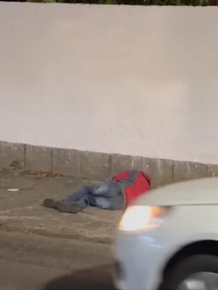 Homem caído no chão teria sido atingido por diversos disparos Reprodução de vídeo