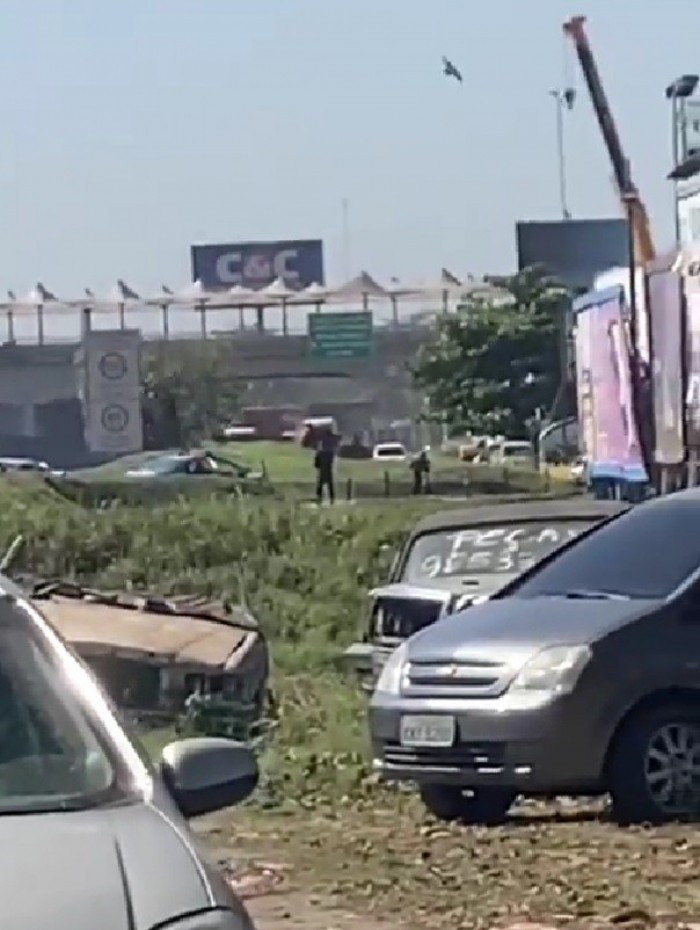 De acordo com a Polícia Militar, equipes do 20º BPM (Nova Iguaçu) estavam em patrulhamento pela via e iniciaram a perseguição ao grupo criminoso, que estava em dois carros. Um dos carros, que dava cobertura conseguiu fugir da abordagem, mas o outro acabou colidindo com uma mureta.