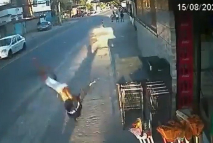 Imagens impressionantes mostram motociclista sendo arremessado durante batida com carro em Honório Gurgel, na Zona Norte do Rio #ODia