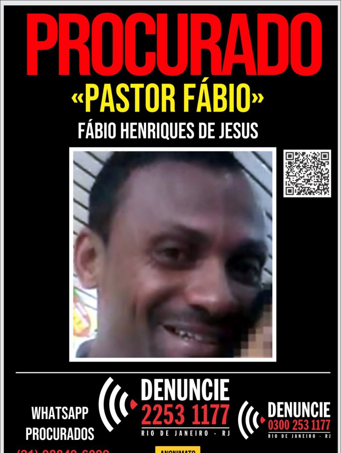 A Justiça decretou prisão preventiva contra Fábio. O Disque Denúncia recebe informações sobre a localização do pastor Fábio Henriques através dos telefones (21) 2253 1177 e 0300-253-1177, pelo Whatsapp (21) 98849-6099, ou ainda, pelo aplicativo "Disque Denúncia RJ".