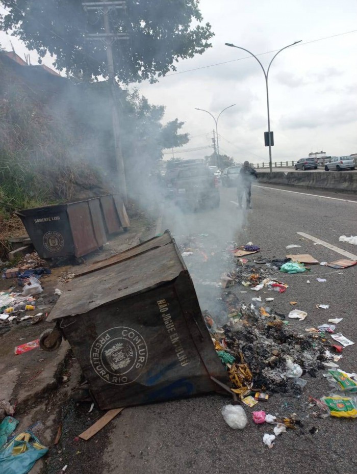 Segundo a PM, moradores colocaram fogo no lixo para bloquear a via a mando do tráficoDivulgação/PMERJ