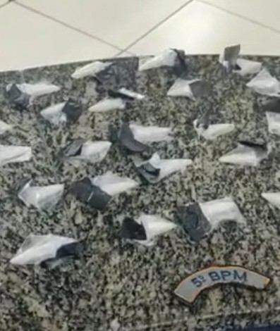 33 pinos de cocaína apreendidos pela PM Divulgação