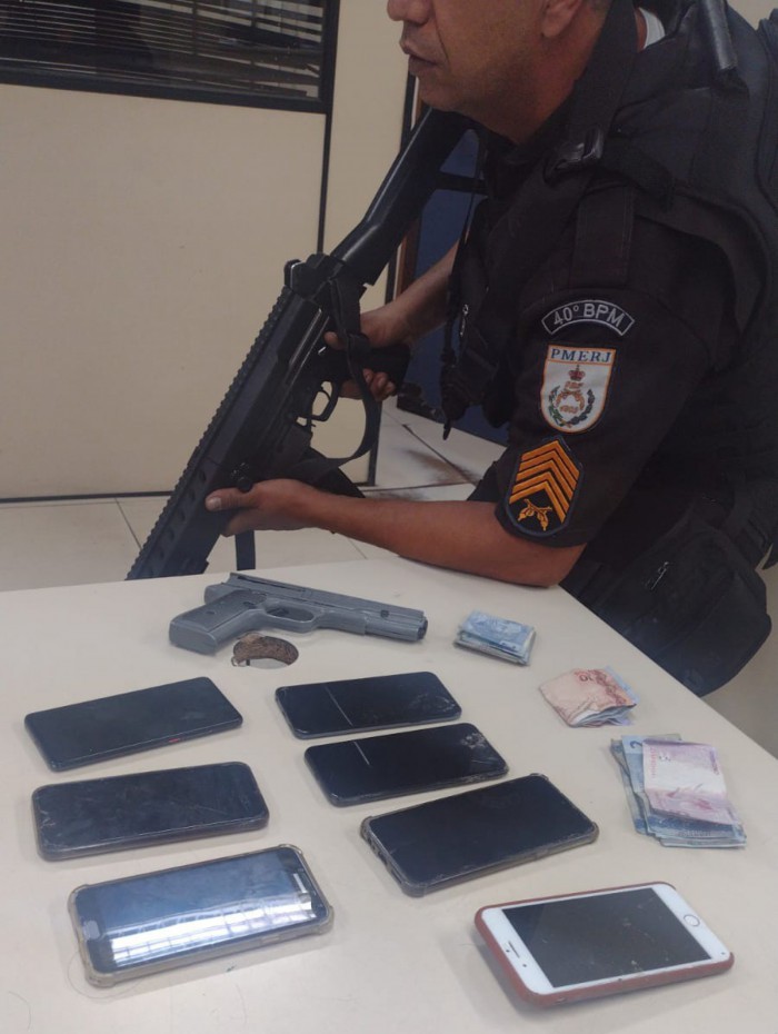 Após a abordagem, os militares prenderam os ocupantes e apreenderam os celulares, o dinheiro e o simulacro de revólver, além de pertences das vítimas.