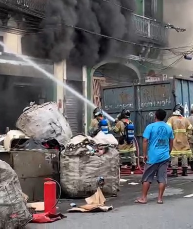 Galpão na Rua Frei Caneca, no Centro do Rio, pega fogo na tarde desta terça-feira (11).