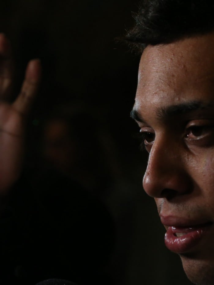 "Fiquei sabendo pela minha advogada que foi decretada a minha prisão preventiva por um crime que eu não fui escutado (sic) na delegacia. Respeito as autoridades e por isso estou vindo aqui. Não fui conduzido pela polícia. Assim que fiquei sabendo, vim imediatamente me entregar para a Justiça porque acredito nela e sei que minha inocência vai ficar comprovada. Não só tecnicamente, mas também para todo o Brasil, de forma que fique incontestável qualquer acusação contra mim."