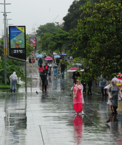 O domingo (15) deve ser de praias cheias, já que não há previsão de chuva e as temperaturas vão permanecer elevadas, com termômetros podendo registrar máxima de 38º C e mínima de 21º C. Apesar do calor, o céu vai ficar nublado a parcialmente nublado e ventos moderados. Na segunda-feira (16) e na terça-feira (17), não deve chover e o dia ficará parcialmente nublado a claro, com máximas de 39º C e 38º C, e mínimas de 21º C, respectivamente.