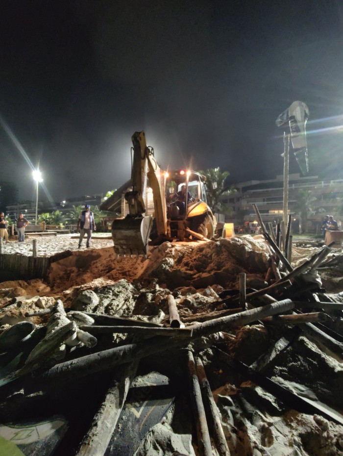 "Essa operação teve foco no ordenamento nas areias, na praia da Barra da Tijuca. Foram três quiosques que tinham enormes estruturas irregulares nas areias, fazendo utilização totalmente ilegal do espaço público e através dessa operação nós conseguimos retirar esses materiais. Foram pelo menos 11 caminhões cheios de estruturas irregulares, recolhidas pelas equipes que estavam em operação e nós também aplicaremos multas a esses quiosques pela utilização ilegal do espaço público", disse o secretário de Ordem Pública, Brenno Carnevale.