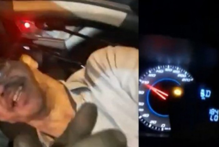 O homem parece ainda ter tentado realizar a manobra cavalo de pau, derrapando o veículo para entrar em outra rua. “Vou meter um cavalo, vou meter um cavalo”, afirma.