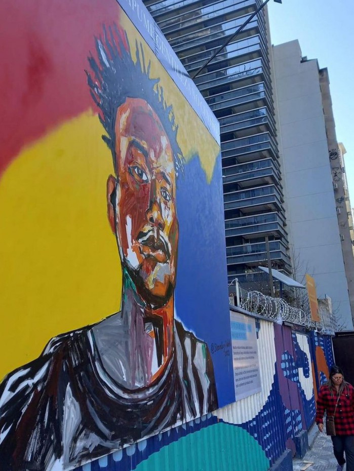 Obra de arte feita por Shambuyi Wetu em homenagem a Moïses Reprodução / Mídias Sociais