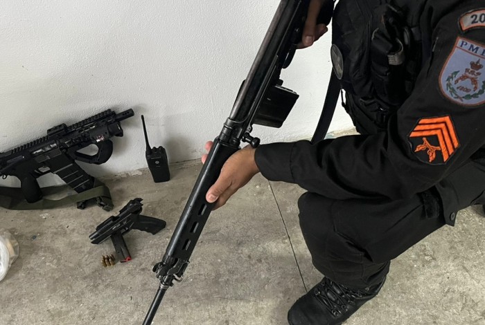 Um fuzil, uma pistola, dois carregadores e 65 pinos de cocaína foram apreendidos