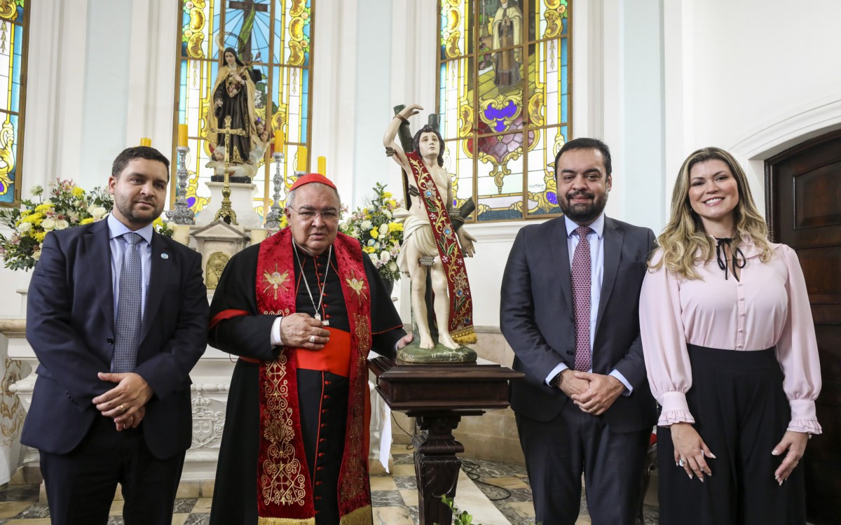 Ao lado da primeira-dama, Analine Castro, do vice-governador, Thiago Pampolha, e dos demais secretários, o governador recebeu, em seu gabinete, uma bênção especial. Em seguida, em procissão acompanhada pelo arcebispo, a imagem de São Sebastião seguiu para a Capela de Santa Teresinha.