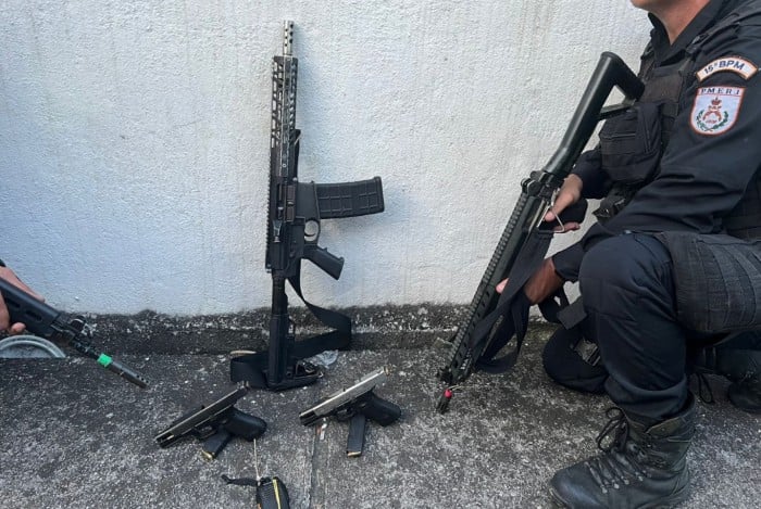 Agentes apreenderam com o trio um fuzil, duas pistolas e um radinhoDivulgação / PMERJ