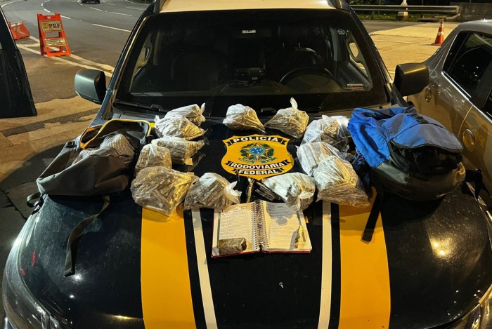 Rio - Uma equipe da Polícia Rodoviária Federal (PRF) apreendeu pouco mais de 4 kg de maconha durante uma fiscalização na Niterói-Manilha (BR-101), em Niterói, na noite deste sábado (4). A droga estava dentro de duas mochilas guardadas no porta-malas de um carro que circulava pela via.