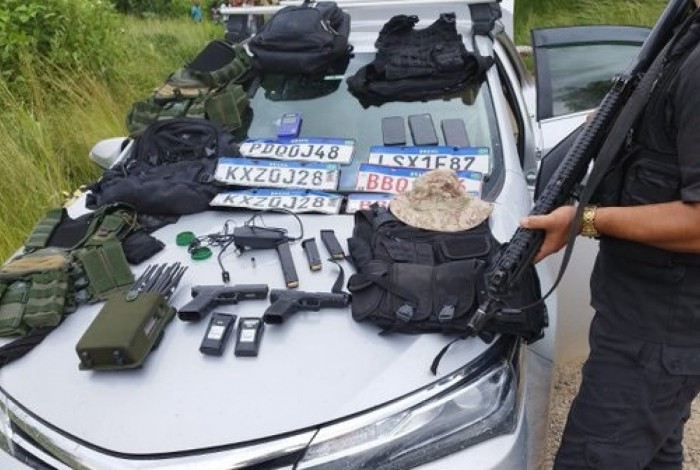 Durante o arrastão, os criminosos estavam armados e chegaram a atacar agentes da Polícia Rodoviária Federal (PRF). Ainda de acordo com a PM, equipes do 24º BPM (Queimados) realizaram cerco tático e interceptaram o grupo no Bairro do Mutirão, na cidade de Seropédica. Duas pistolas, um bloqueador de sinal de GPS, placas de veículos, capas de coletes balísticos, mochilas e um automóvel foram apreendidos.