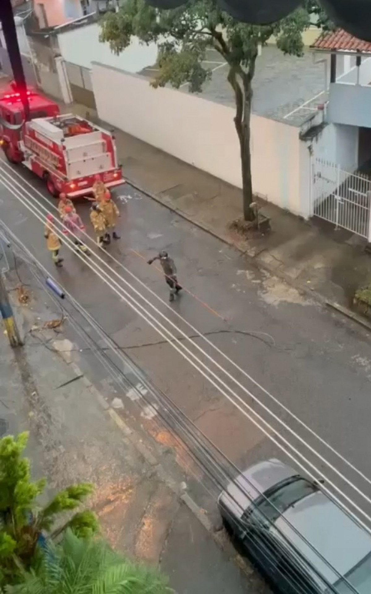 Após socorrerem a vítima, os bombeiros recolheram para a calçada, o fio que estava no meio da rua, e isolaram a área do poste com fitas de sinalização. Também foi realizada a poda da árvore que quebrou.