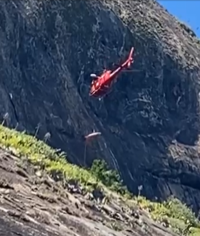 Alpinista é resgatada por helicóptero do Corpo de Bombeiros após se ferir no Costão de Itacoatiara, em NIteróiReprodução