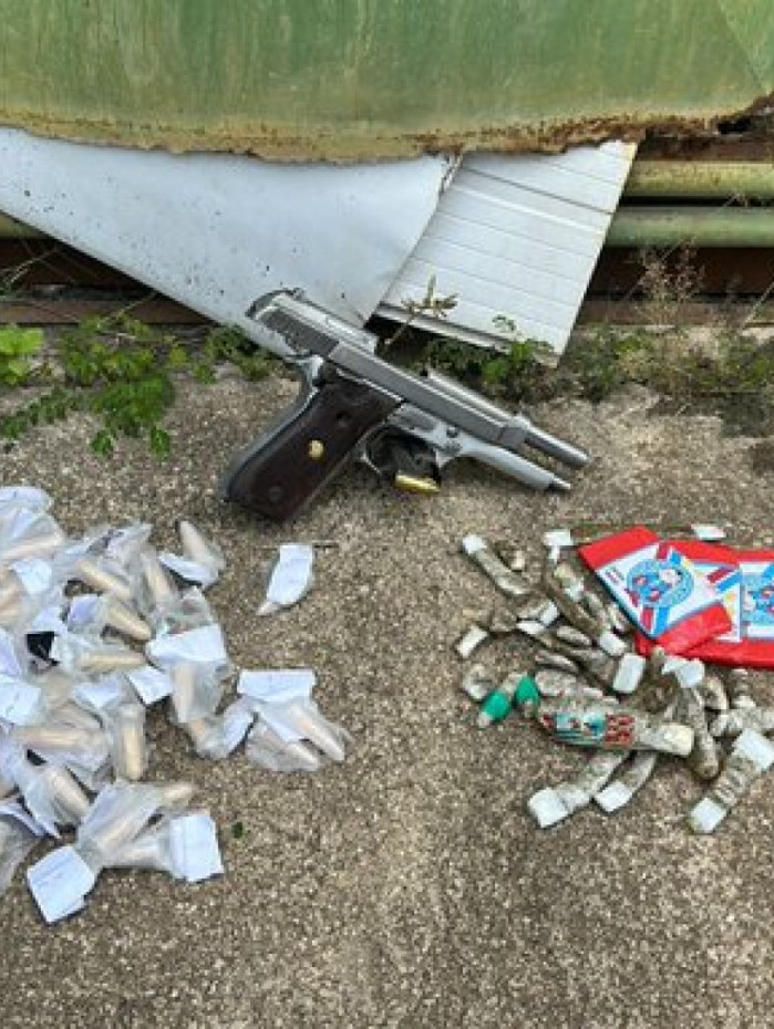 Com o homem os agentes apreenderam uma pistola calibre 9mm e drogas a serem contabilizadas.