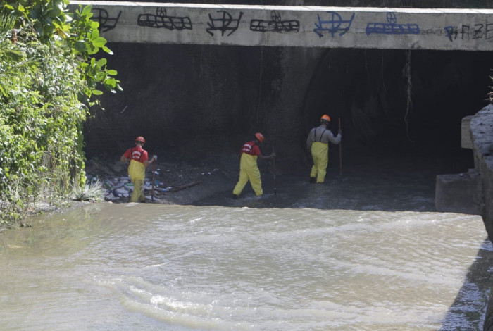 Segundo a Defesa Civil, os trabalhos para encontrar o homem começaram na noite do mesmo dia. Houve buscas pelas galerias pluviais, com o apoio de mergulhadores do Grupamento de Busca e Salvamento (GBS). Além de barcos, motos-aquáticas e drones, guarda-vidas fizeram uma varredura da saída do Rio Joana para a Baía de Guanabara.