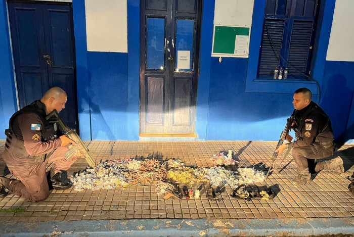 Com os criminosos, foram apreendidos grande quantidade de entorpecentes, duas pistolas e duas granadasDivulgação / PMERJ