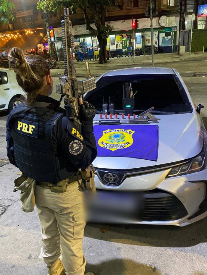PRF apreendeu pistola, espingarda, bloqueador de sinal e rádiosDivulgação/Polícia Rodiviária Federal