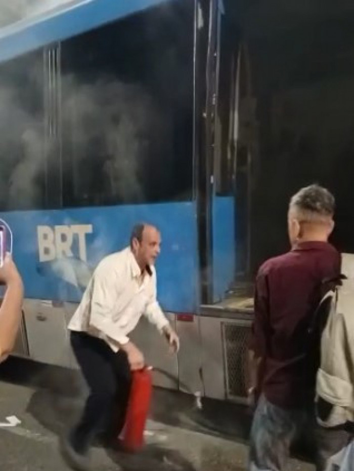 BRT apresenta problema e assusta passageiros. Motorista teve que usar extintor de incêndio.