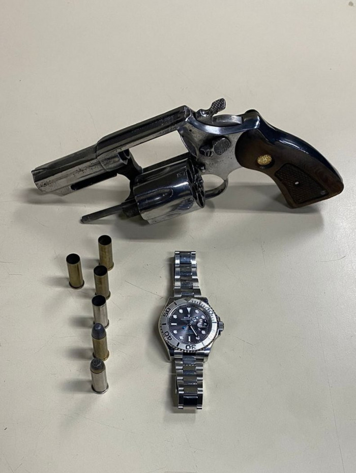 Além do relógio roubado, um revólver calibre .38, com munições, foi apreendido com ele. A ocorrência foi encaminhada para a 14ª DP (Leblon).