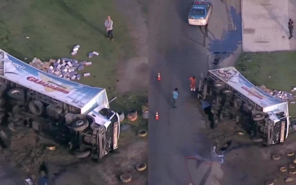 Rio - Um caminhão do supermercado Guanabara tombou na Avenida Brasil, em Santíssimo, sentido Santa Cruz, na Zona Oeste do Rio. O acidente aconteceu na manhã desta terça-feira (11) por volta das 6h27 da manhã.