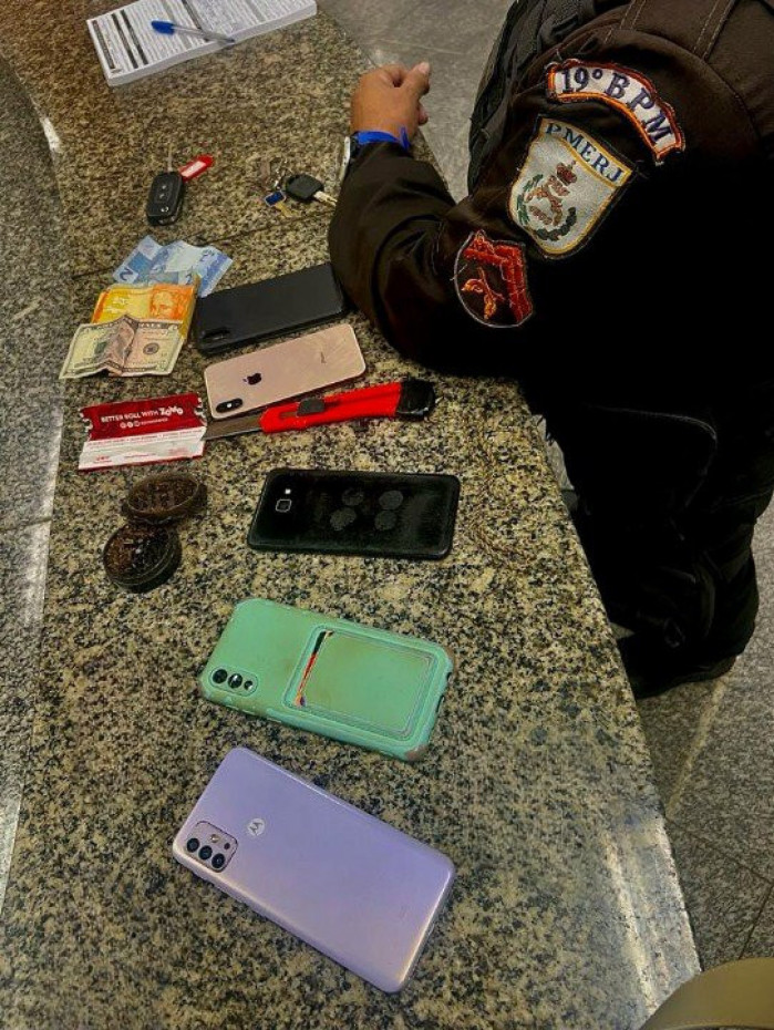 Com o grupo, os PMs apreenderam cinco celulares, um moedor de ervas, um estilete, R$ 24 e US$ 5. A ocorrência foi encaminhada à 12ª DP (Copacabana).