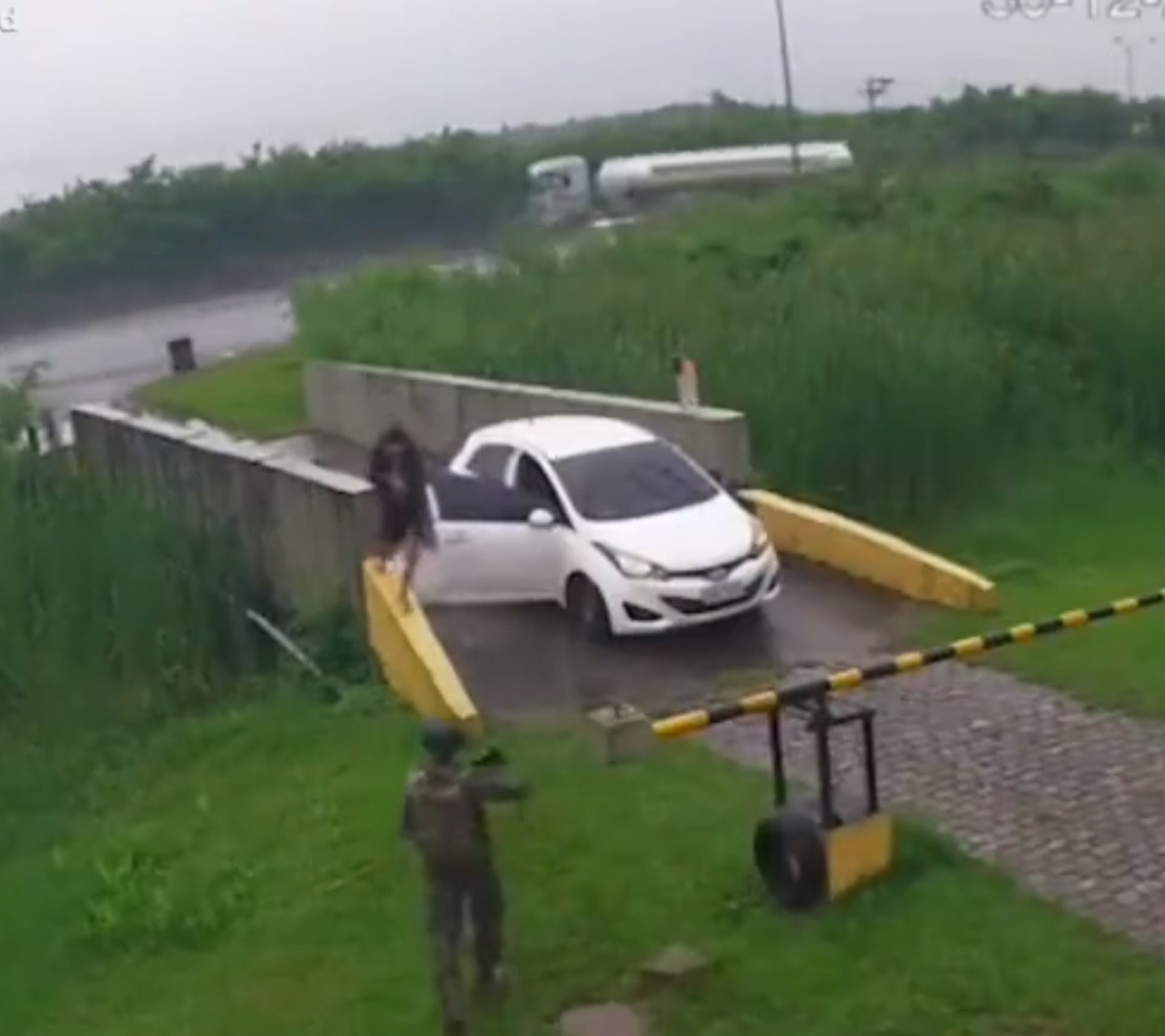 Câmera de segurança flagrou momento em que criminoso salta de carro e rouba fuzil - Reprodução/Redes Sociais