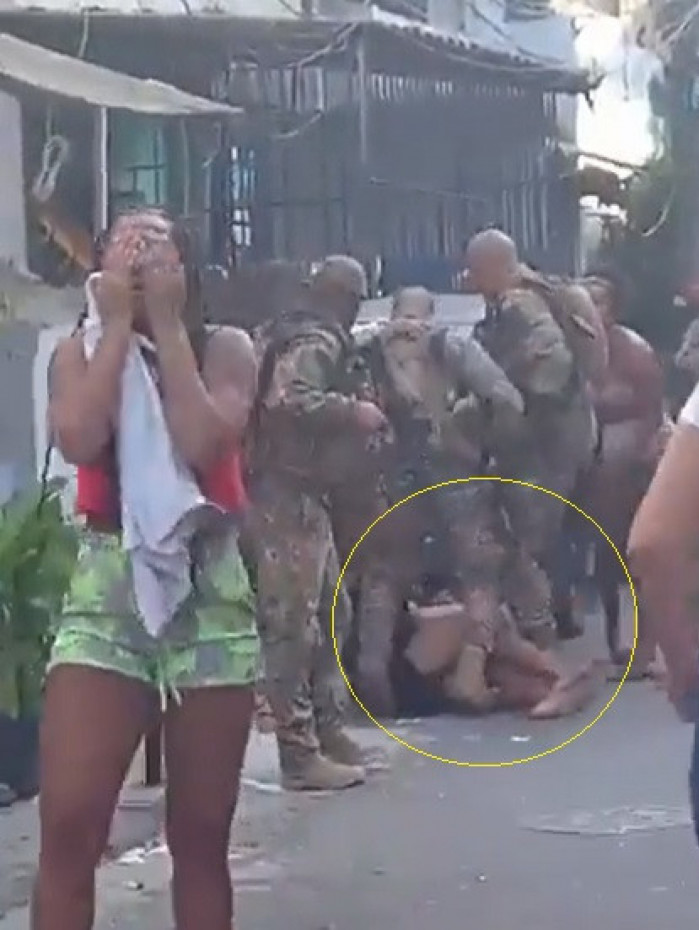 Um vídeo que circula nas redes sociais mostra, pelo menos, quatro policiais militares imobilizando um homem deitado no chão, que tenta se soltar, enquanto há um grupo de moradores ao redor deles, entre eles, uma criança. É possível ouvir gritos e ver algumas mulheres se aproximando, uma delas, de blusa rosa e short verde, chorando.