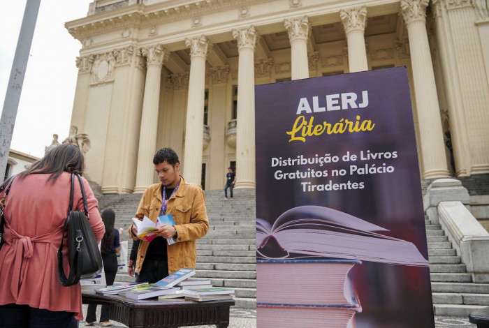 Rio - A Assembleia Legislativa do Estado do Rio (Alerj) distribuiu, em parceria com a Imprensa Oficial do Rio, nesta segunda-feira (22), mais de 150 livros nas escadarias do Palácio Tiradentes, sede histórica do Parlamento Fluminense, no Centro. A ação celebrou o Dia da Língua Nacional, que é comemorado em 21 de maio. Obras de autores como Ken Follet, R. L Stine, Marina Colasanti, José de Alencar, Lima Barreto, Álvares de Azevedo, Lygia Fagundes Telles e Arnaldo Niskier estavam entre os livros que foram doados.