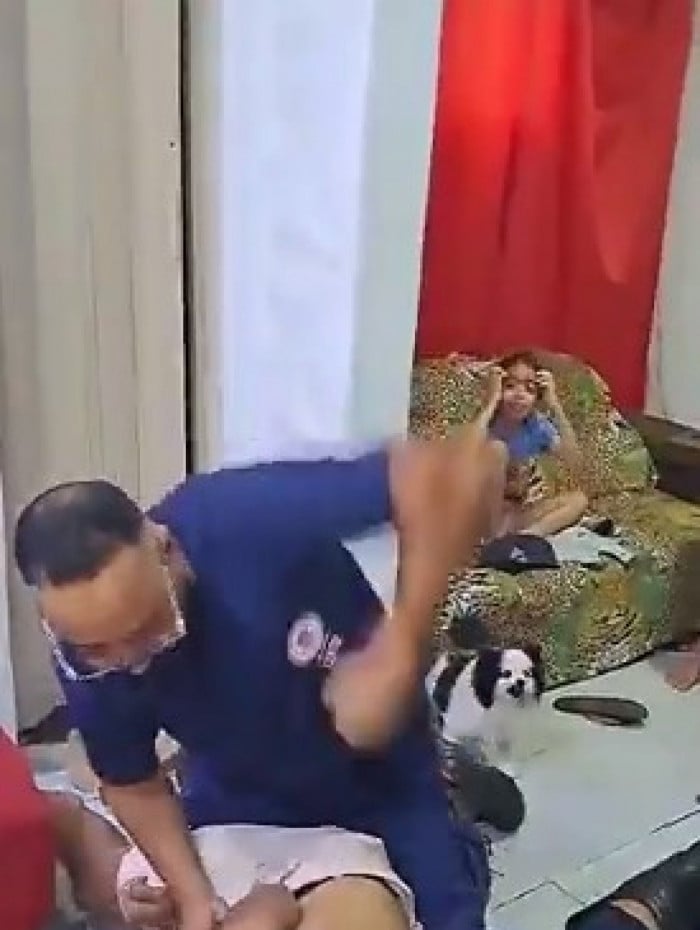 A família da vítima havia acionado o serviço para que o homem fosse levado a uma clínica psiquiátrica. O vídeo, feito por um dos familiares, mostra uma mulher e uma criança chorando e tentando intervir.