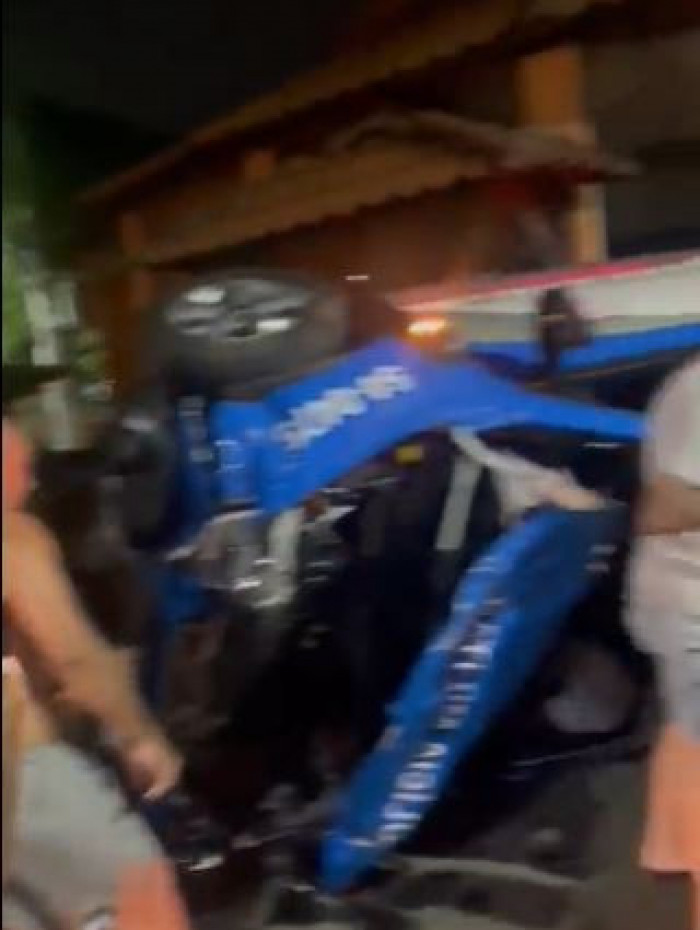 Uma das viaturas capotou e ficou completamente destruídaReprodução