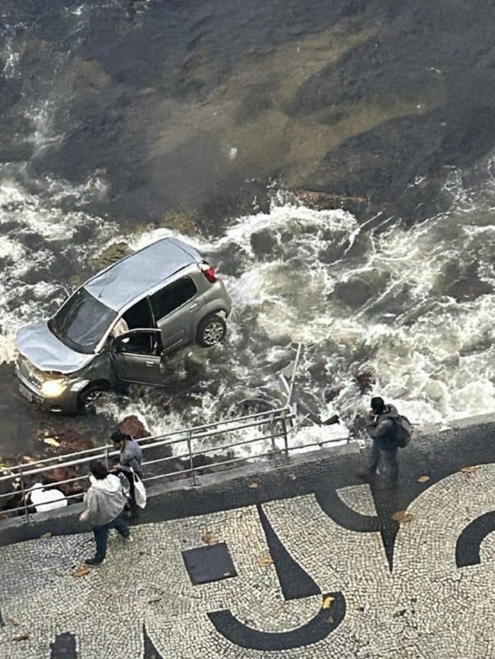 Os bombeiros foram acionados às 6h30 para atender o acidente, que aconteceu em uma curva da Avenida Jornalista Francisco Roberto Torres, na altura da pedra de Itapuca. Nas imagens, é possível ver que o carro invadiu uma calçada, destruiu uma grade de proteção e caiu no mar.