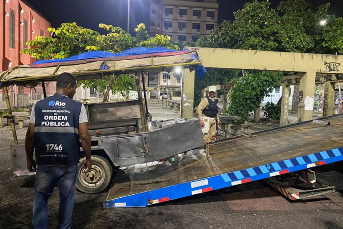 Na ação desta terça, foram apreendidas estruturas que eram deixadas em área pública, além de centenas de caixotes, lonas, barracas, triciclos e muitos produtos de ambulantes irregulares. Também foram retidas duas estruturas de palco e dezenas de grades. Já a Comlurb removeu duas toneladas e meia de lixo.