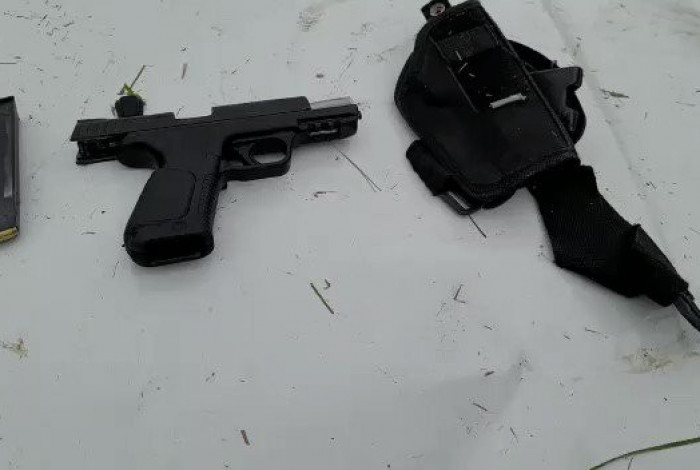 Os policiais apreenderam com os suspeitos uma pistola 9mm, um carregador de pistola e dois aparelhos celulares Reprodução