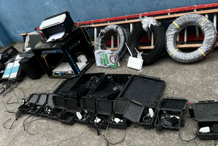 Ainda durante a ação, um local de distribuição de sinal clandestino de internet foi encontrado e houve apreensão de dez roteadores, seis caixas de passagem, dois aparelhos de armazenamento, três equipamentos de potência métrica de fibra óptica, dois equipamentos de solda de fibra óptica, 200 metros de cabos telefônicos, um notebook, uma impressora e duas escadas.