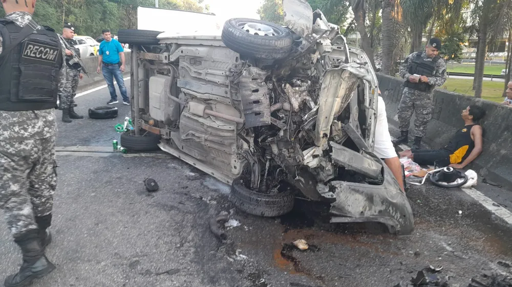 Capotamento interdita trecho da Avenida Ayrton Senna, na Barra da Tijuca