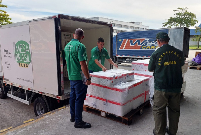 Os auditores suspeitaram das informações irregulares que constavam na licença de origem do pescado e realizaram uma verificação da carga.