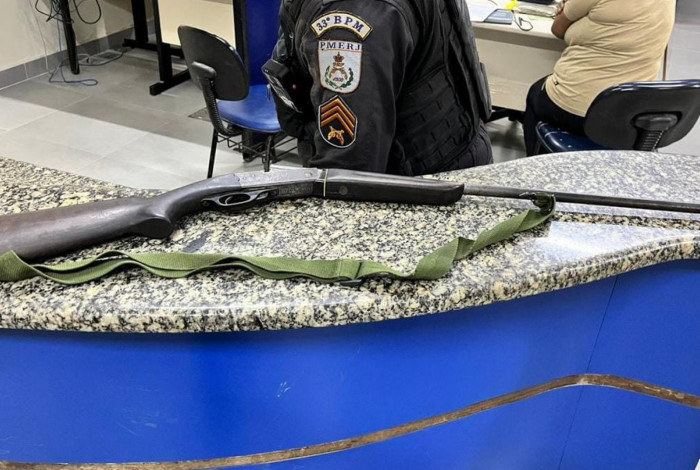 De acordo com a corporação, a arma estava sendo usada para ameaçar as vítimas durante uma discussão.